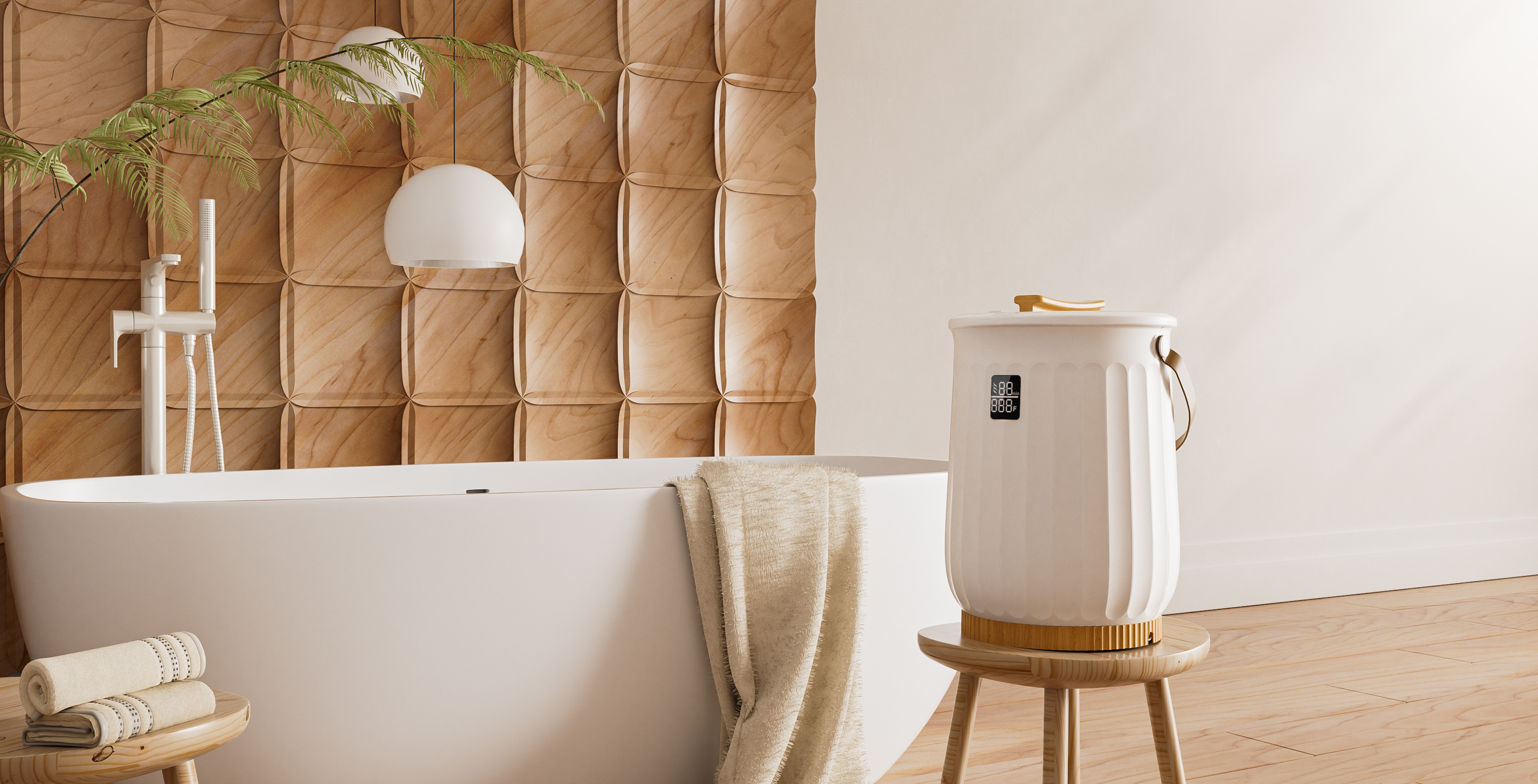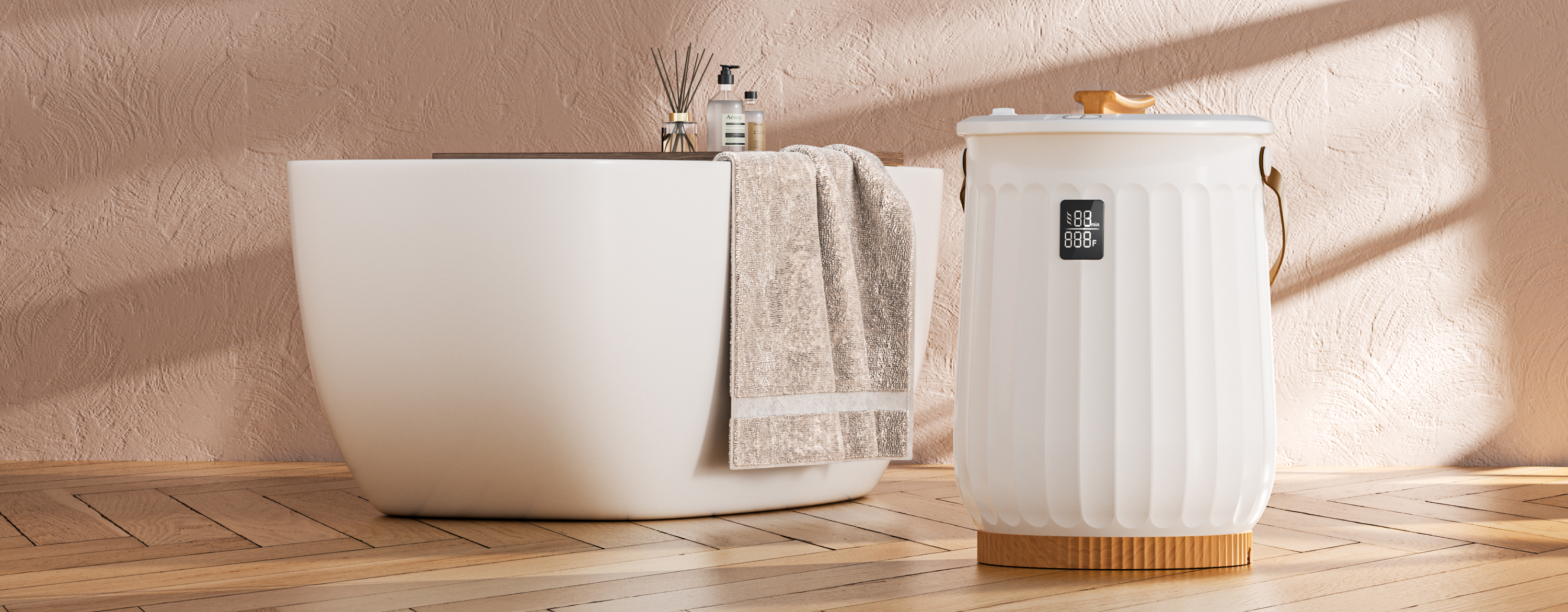 Heating up quickly in 4 mins and with a delay function, WarmHugger Towel Warmer Bucket provide you with warm and soft towels anytime.